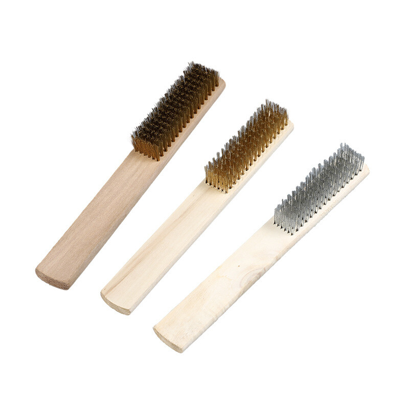 Multi-function mini wire brush for cleaning, stain removal and rust removal, grinding and polishing wood handle brush, stainless steel mini knife brush